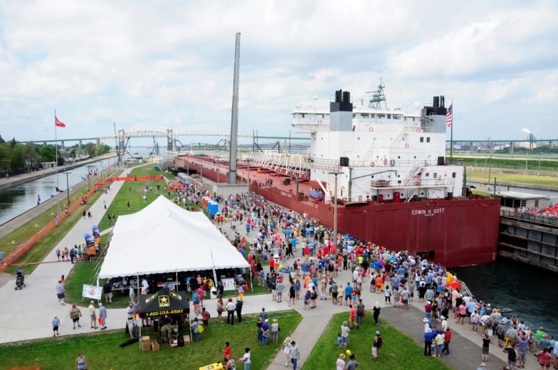Soo Locks Engineers Day - West Portage Avenue closed to traffic for pedestrians, vendors, and displays.